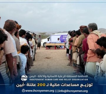 المنظمة المستقلة توزع مساعدات مالية لـ 200 عائلة في أبينAdminمارس 31, 2025 وزعت المنظمة المستقلة للرعاية الإنسانية والإغاثة IHCRO YEMEN مساعدات مالية لـ 200 عائلة في محافظة أبين، وذلك ضمن جهودها ... اقرأ أكثر